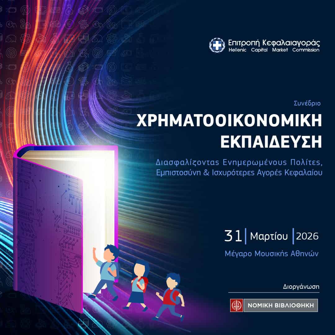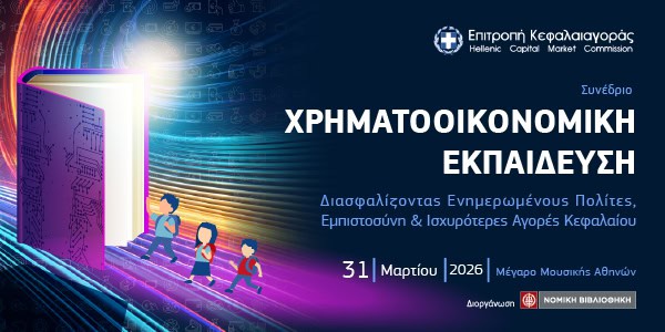 Στο πλαίσιο του στρατηγικού στόχου της για την ενίσχυση της εμπιστοσύνης των πολιτών στην ελληνική κεφαλαιαγορά, η Επιτροπή Κεφαλαιαγοράς διοργανώνει την Τρίτη 31 Μαρτίου 2026 το Συνέδριο «Χρηματοοικονομική Εκπαίδευση: Διασφαλίζοντας Ενημερωμένους Πολίτες, Εμπιστοσύνη & Ισχυρότερες Αγορές Κεφαλαίου» με σκοπό να συμβάλει στην ανάδειξη της σημασίας της χρηματοοικονομικής παιδείας ως βασικό πυλώνα για τη διαμόρφωση υπεύθυνων πολιτών και επενδυτών στην Ελλάδα.