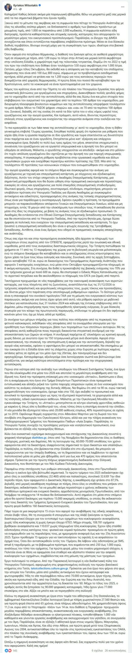 Η Κυριακάτικη ανάρτηση του Πρωθυπουργού