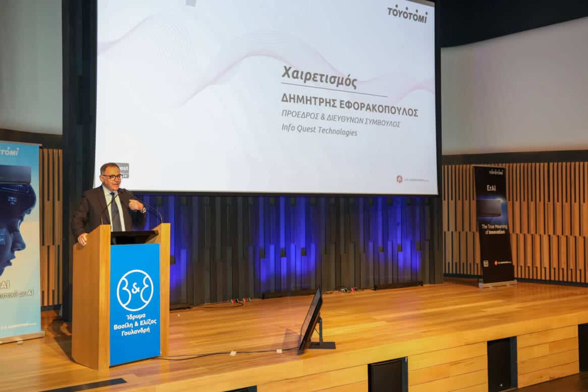 Η παρουσίαση του Toyotomi ErAI πλαισιώθηκε από τις ομιλίες του Καθηγητή του Τμήματος Πληροφορικής του Αριστοτελείου Πανεπιστημίου Θεσσαλονίκης κ. Ιωάννη Βλαχάβα, που εξήγησε στους παρευρισκόμενους ότι οι αυξανόμενες αναφορές στην Τεχνητή Νοημοσύνη είναι απολύτως δικαιολογημένες, καθώς ενσωματώνεται με γρήγορους ρυθμούς στην καθημερινότητά μας, κάνοντας τη ζωή μας ευκολότερη και πιο αποτελεσματική.