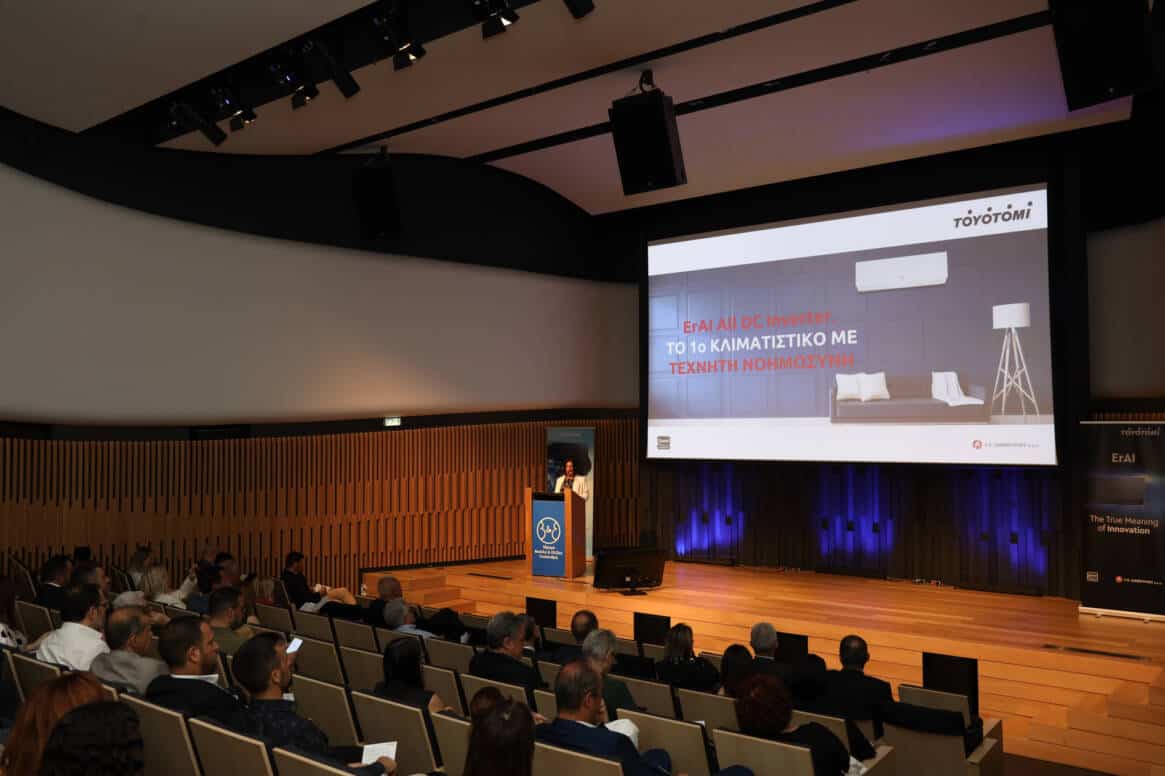 Με μεγάλη επιτυχία και τη συμμετοχή εκπροσώπων ΜΜΕ και στελεχών του συνόλου της αγοράς Ηλεκτρικών και Ηλεκτρονικών Συσκευών, παρουσιάστηκε το Toyotomi ErAI All DC Inverter, η πρώτη σειρά οικιακών κλιματιστικών με ενσωματωμένη τεχνολογία Τεχνητής Νοημοσύνης (ΑΙ).